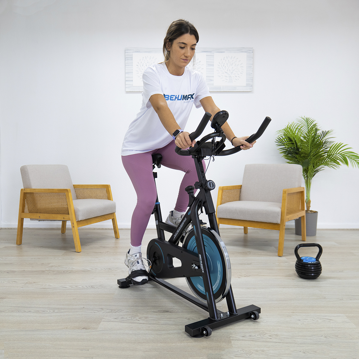 Gracias a las ruedas de transporte, mover la bicicleta es sencillo, lo que facilita su uso en cualquier espacio del hogar. Con dimensiones compactas, esta bicicleta estática es la mejor opción para quienes buscan una solución de ejercicio efectiva sin ocupar mucho espacio.