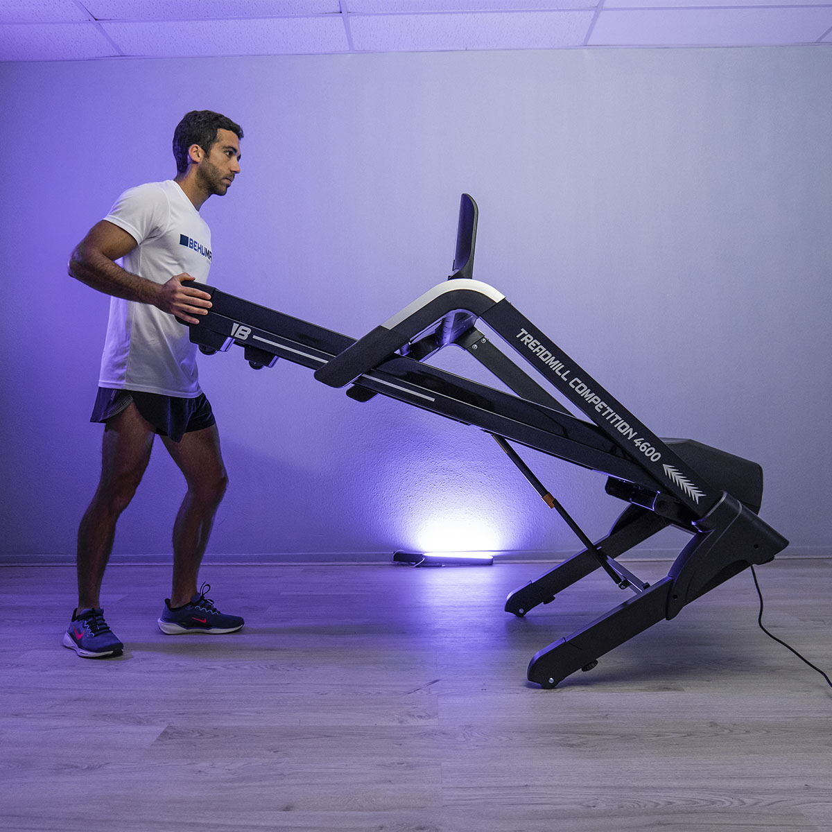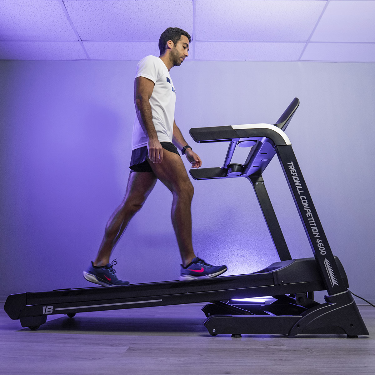 La Treadmill Competition 4600 lleva tus entrenamientos a un nivel superior, con 20 niveles de inclinación automática y una estructura robusta diseñada para usuarios de todos los niveles. Su potente motor permite alcanzar hasta 20 km/h, ofreciendo una experiencia de ejercicio completa, personalizada y adaptada tanto a principiantes como a usuarios avanzados.