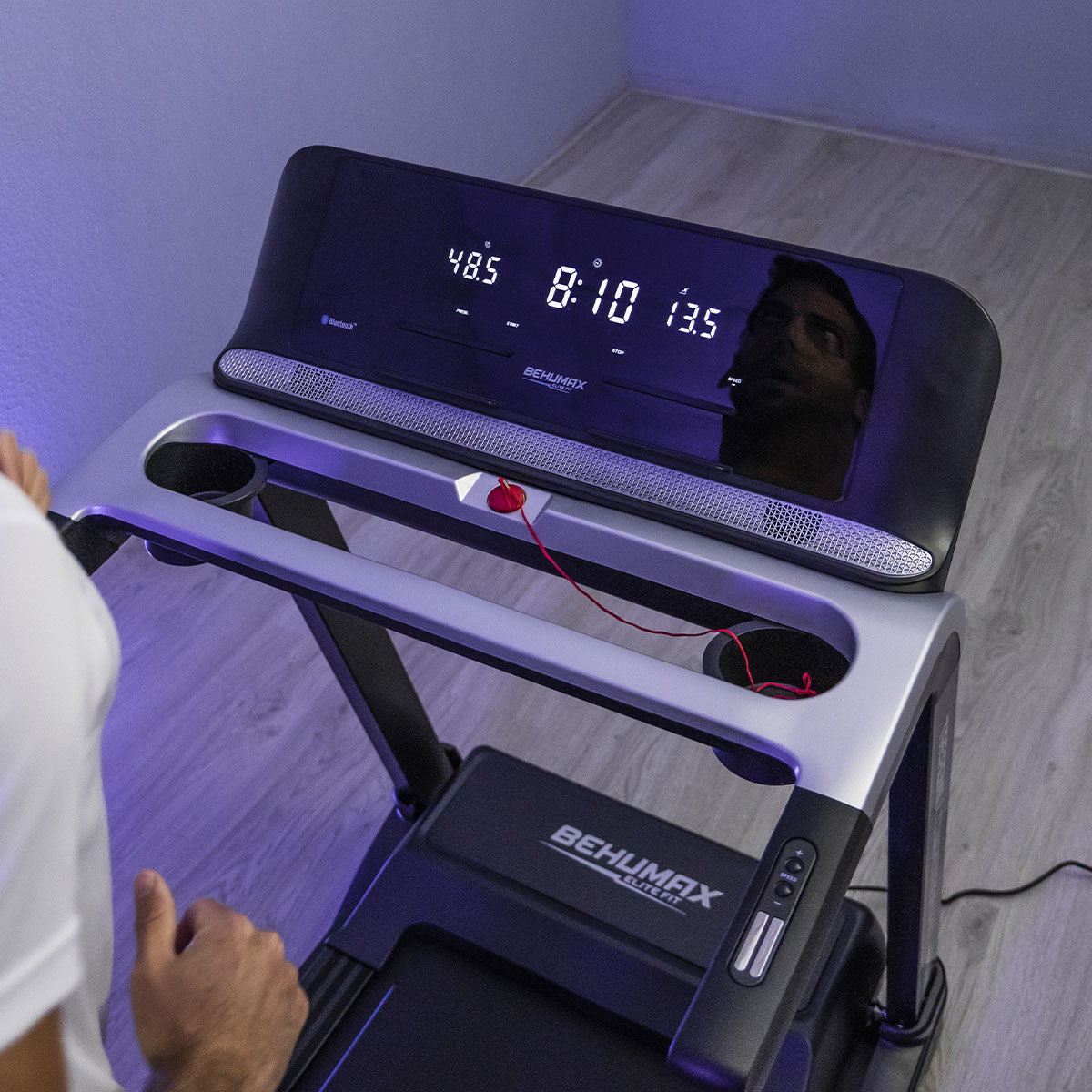 La pantalla LED ofrece una visualización clara de todos tus datos clave: velocidad, tiempo, distancia, calorías y frecuencia cardíaca. Su diseño intuitivo te permite controlar fácilmente tu progreso durante cada sesión de entrenamiento.