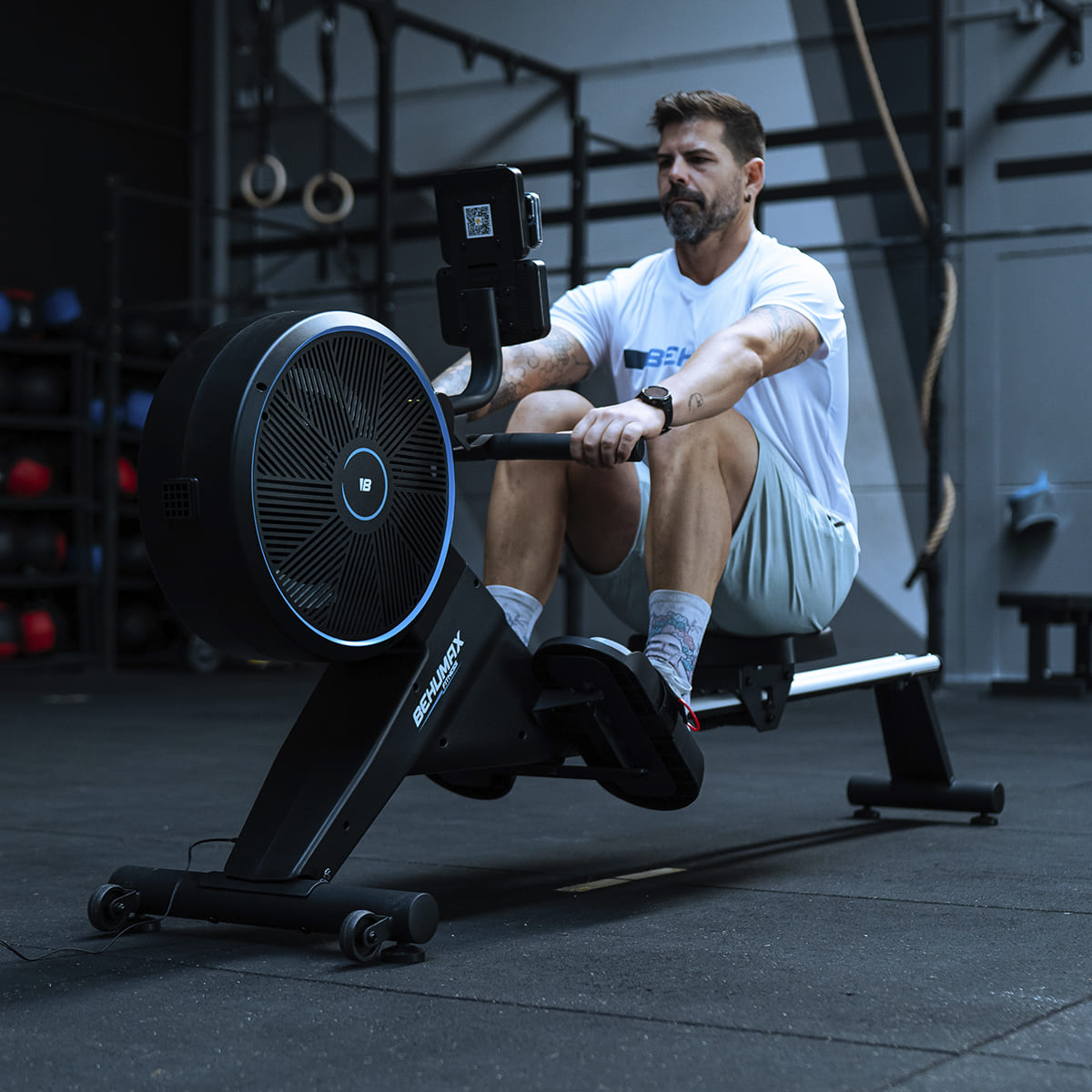 Esta máquina de remo cuenta con un avanzado sistema de frenado que combina tecnología de aire y magnetismo, logrando una resistencia suave y progresiva que se ajusta a través de 16 niveles controlados por un motor. Este diseño permite adaptar la intensidad del ejercicio, brindando una experiencia de entrenamiento completamente personalizada según las necesidades y el nivel de cada usuario.