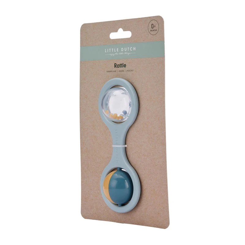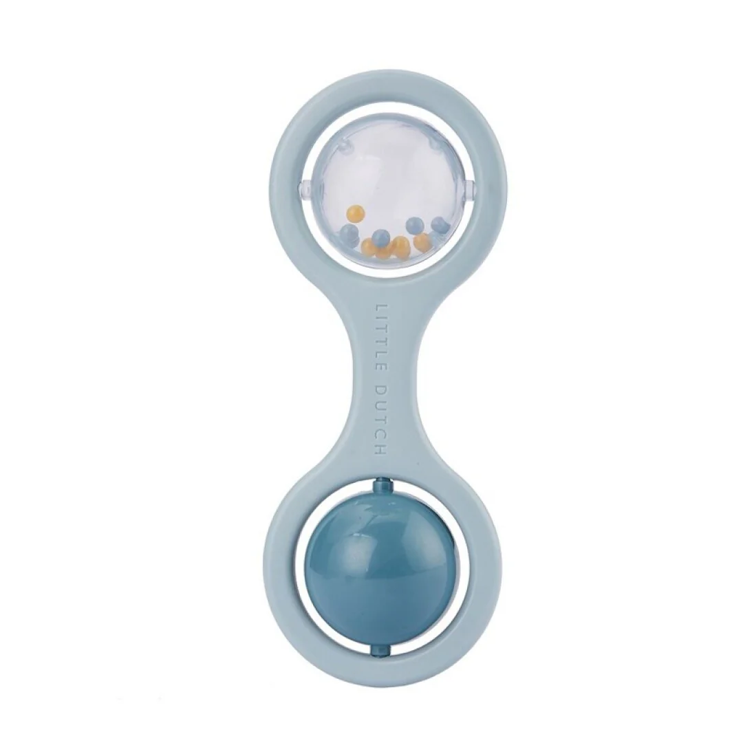 ¡Este sonajero clásico azul de Little Dutch es imprescindible! El sonajero es fácil de agarrar y de limpiar. Su hijo puede agitar el sonajero y escuchar las bolitas moverse, además de hacer girar la pelota giratoria. Tamaño: 14,5 cm. Empaquetado con un cartón trasero. Apto para niños de 0 meses en adelante.