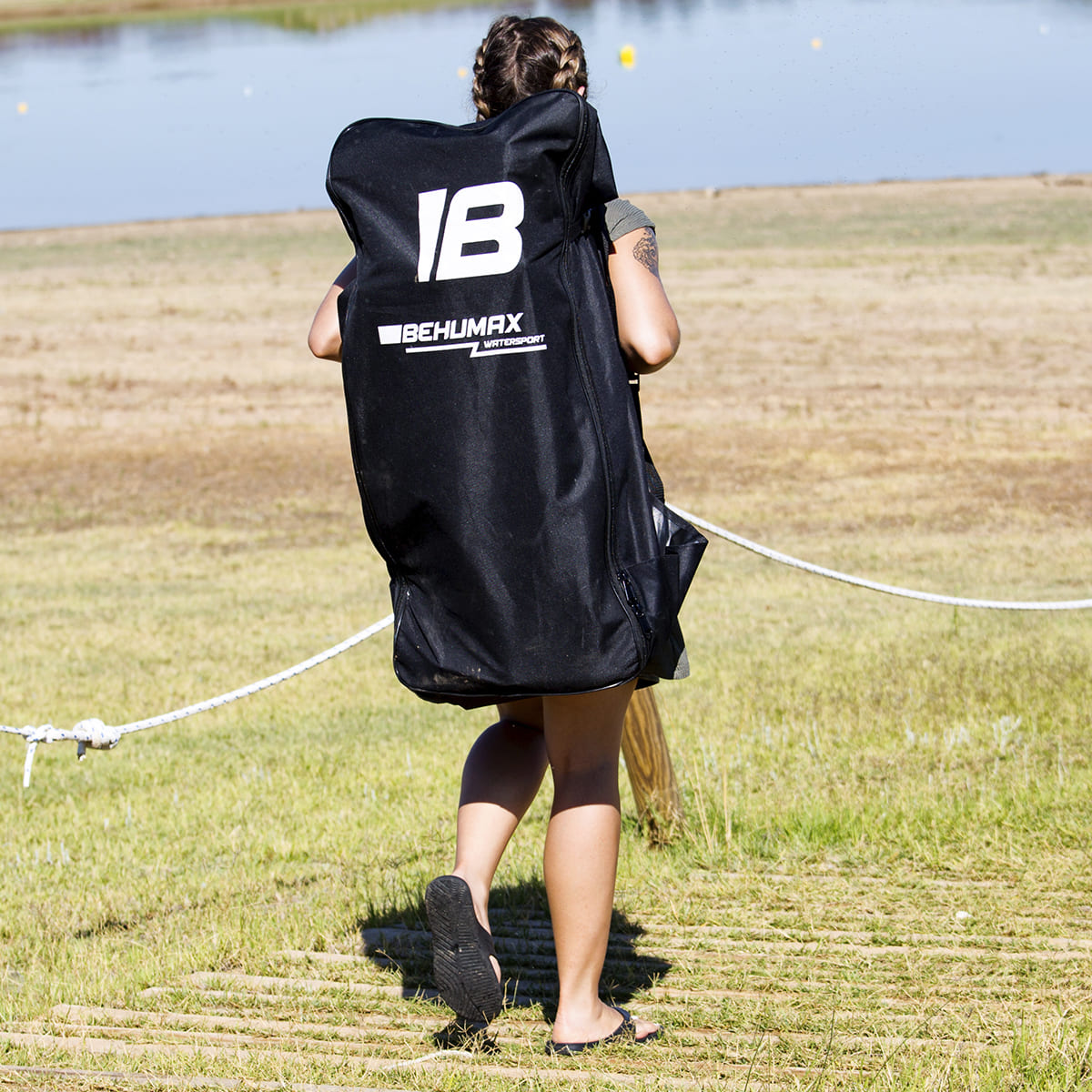 Tabla de paddle surf hinchable muy fácil de plegar y transportar en la mochila sin apenas ocupar espacio.